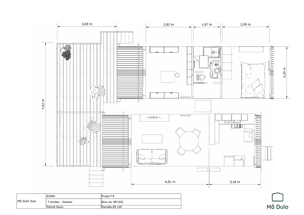 La rencontre avec le Mô Dulo est décisive. Un habitat en bois, aux lignes organiques et à la lumière apaisante. Ensemble, nous dessinons un Duo sur mesure : grande cuisine ouverte, salon traversant, chambre calme, salle de bain optimisée, un coin lecture face au sud.